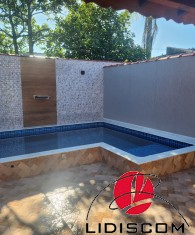 Belíssimo imóvel novo, são 02 dormitórios, sendo 01 suíte, sala em conceito aberto com cozinha, acabamento de primeiríssima qualidade, sanca de gesso com iluminação de led, área de serviço coberta, uma bela piscina com bico de hidromassagem e cascata, com iluminação de led, um belo paisagismo, garagem para 01 auto, no Bal. Campos Elíseos em Itanhaém