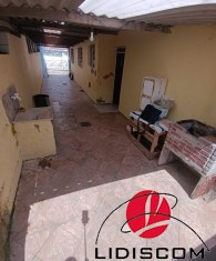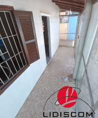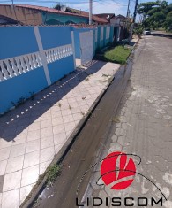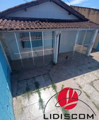 Casa térrea localizada no meio do terreno com corredores laterais, com 02 dormitórios, sala e cozinha bem amplas, uma área lateral coberta com lavanderia, varanda envidraçada, possui um quintal enorme com uma edícula contendo 01 quarto enorme com mais de 40m² , sala/cozinha 01 banheiro, lavanderia coberta, garagem para 06 autos. Fica ao lado do Colégio Estadual e a 400 metros do mar. Comercio local bem farto. LADO PRAIA! —Imóvel muito bem localizado.