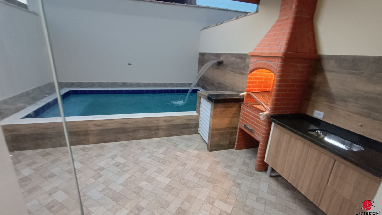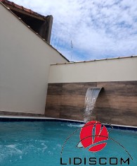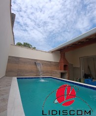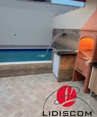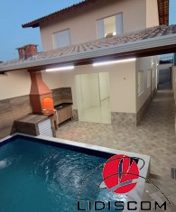 Sobrado com 03 dormitórios, 01 no piso térreo e 02 no piso superior, sendo um deles suíte, 01 banheiros social, mais uma lavabo, lavanderia coberta, Sala e cozinha em conceito aberto, Lavanderia coberta, uma linda área gourmet com churrasqueira e uma belíssima piscina com 02 bicos de hidromassagem e cascata, garagem para 02 autos. Acabamento de primeirissimaqualidade4, pisos em porcelanato, esquadrias em alumínio, Fica a 600 metros do mar. LADO PISTA —Imóvel muito bem localizado em bairro demoradores.